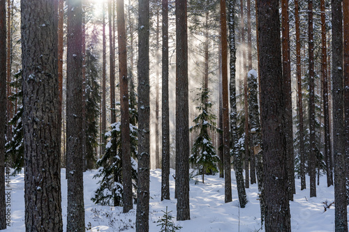 © Rolands, Fototapeta premium beautiful sunny winter day in Latvia with white fluffy snow in the forest