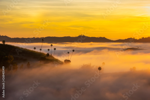 Naklejka premium Beautiful Sunrise and the mist at Khao Kho, Phetchabun Province, Thailand.
