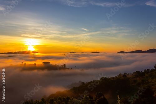 Fototapeta premium Beautiful Sunrise and the mist at Khao Kho, Phetchabun Province, Thailand.