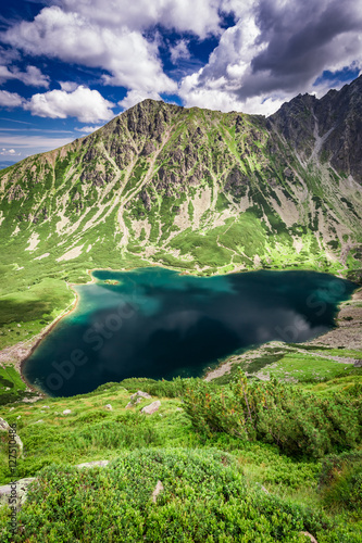 Obraz premium Beautiful sunrise at Czarny Staw Gasienicowy in summer, Tatras