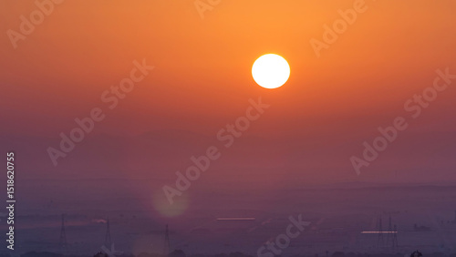 Obraz premium Beautiful sunrise in lonely desert and mountain in the background timelapse, Ajman, UAE