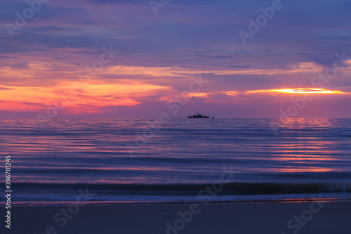 Naklejka premium Beautiful sunrise in the sea on the beach