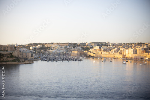 © Cavan, Fototapeta premium Beautiful sunrise in Valletta harbor in Malta.