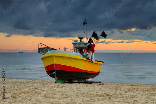 Fototapeta premium Beautiful sunrise on the beach of Baltic Sea in Sopot, Poland