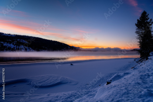 © knowlesgallery, Obraz premium Beautiful sunrise over a winter frozen lake