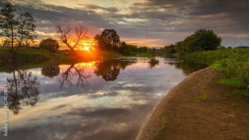 Obraz premium Beautiful sunrise over Bzura river, Mazovia, Poland.