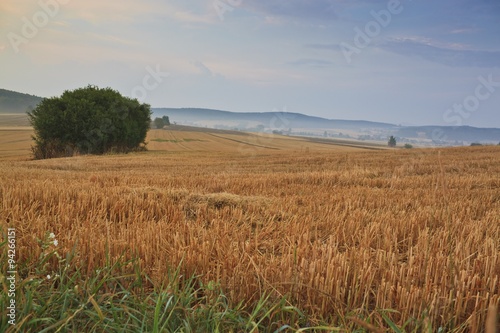 Obraz premium Beautiful sunrise over misty meadow