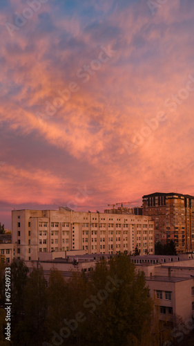 © Vadim Volodin, Naklejka premium Beautiful sunrise over the city