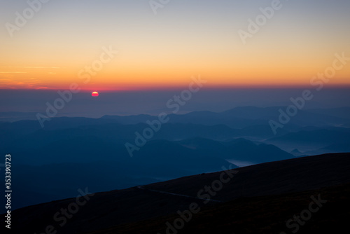 © Filip, Fototapeta premium Beautiful sunrise over the mountains, long distance