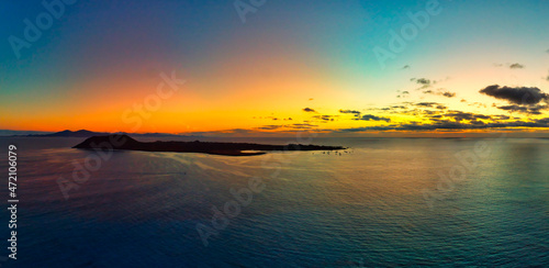 Obraz premium Beautiful sunrise panoramic view over Isla de Lobos Fuerteventura