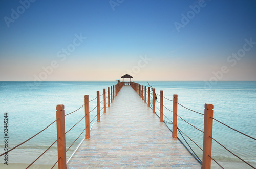 Naklejka premium Beautiful sunset at tropical beach with jetty