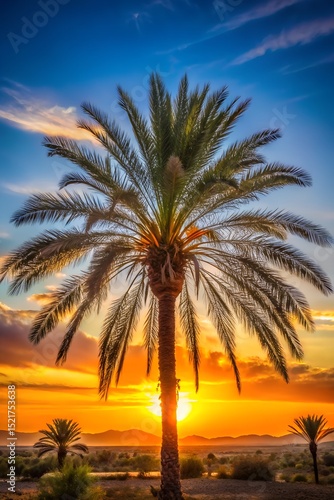 Naklejka premium Beautiful Sunset Behind a Palm Tree in a Tropical Landscape