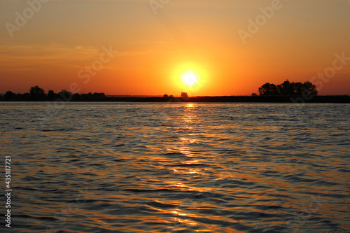 © albert, Fototapeta premium beautiful sunset by the river with waves