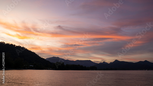 Fototapeta premium Beautiful sunset clouds view over the mountain view.