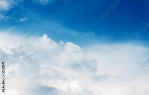 © Baurzhan I, Obraz premium Beautiful Sunset Cloudscape. Blue sky and white clouds.