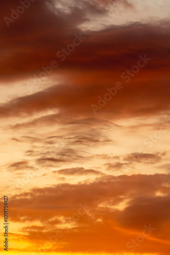 © PIC by Femke, Obraz premium beautiful sunset golden hour above sea background sky orange