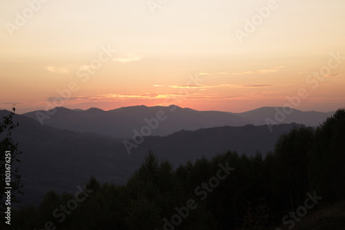 Obraz premium Beautiful sunset in the mountains, Ukrainian Carpathians