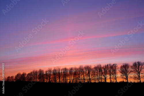 © Color Frame, Obraz premium Beautiful sunset landscape silhouette trees pink purple sky background