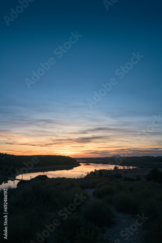 Obraz premium Beautiful sunset landscape with a lake in Almansa, Spain