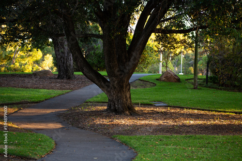 Fototapeta premium beautiful sunset lighting on a walk path at Adelaide parklands