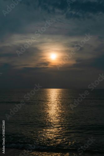 © Wattanadach, Naklejka premium Beautiful sunset nature background. Beautiful white clouds and blue sky high definition skyscraper with grunge texture for background. soft and blur focus.