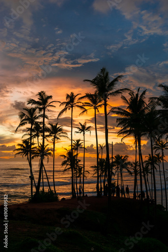 Obraz premium Beautiful sunset on the Indian Ocean coast on the island of Sri Lanka, Mirissa.
