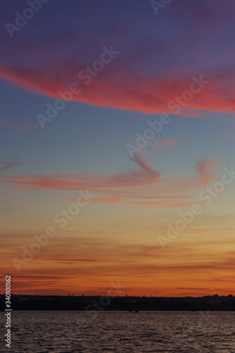 Obraz premium Beautiful sunset on the lake with clouds and reflections on the water