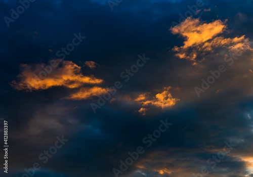 Fototapeta premium Beautiful sunset. Orange and black clouds in the sky