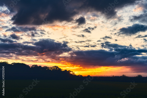 © Armin Staudt, Obraz premium beautiful sunset over a meadow with dramatic sky