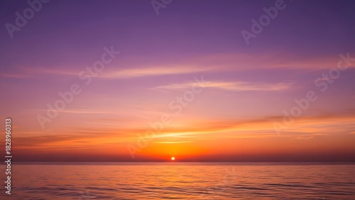 © Ambaring, Naklejka premium Beautiful Sunset Over Calm Ocean with Vibrant Purple Orange Sky
