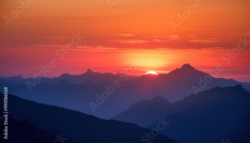 © Thaivb.NET, Fototapeta premium Beautiful Sunset Over Mountain Range in Vibrant Colors