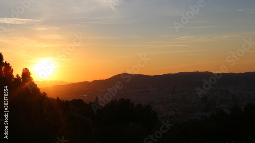 © Andrew Philip, Fototapeta premium Beautiful sunset over the forest and the mountains