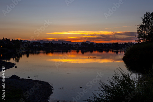 © Victoria Ditkovsky, Fototapeta premium Beautiful sunset over the lake
