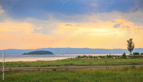© Yuri Bizgaimer, Fototapeta premium beautiful sunset over the lake