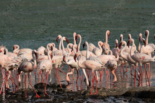 © vaclav, Fototapeta premium beautiful sunset over the lakes of Baringo with pink flamingos in the foreground