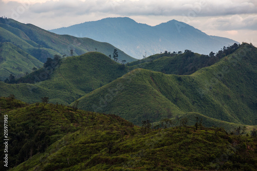 Fototapeta premium Beautiful sunset over the mountain range at the west of (Khao Chang Puak) at...