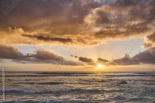 © Alex Pelikh, Obraz premium Beautiful sunset over the ocean