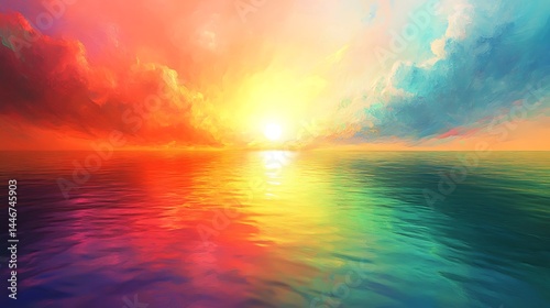 © MDAFSHAR, Fototapeta premium Beautiful sunset over the sea. rendering, illustration