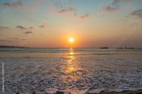 Naklejka premium Beautiful sunset scenery at Jimbaran beach, Bali island, Indonesia.