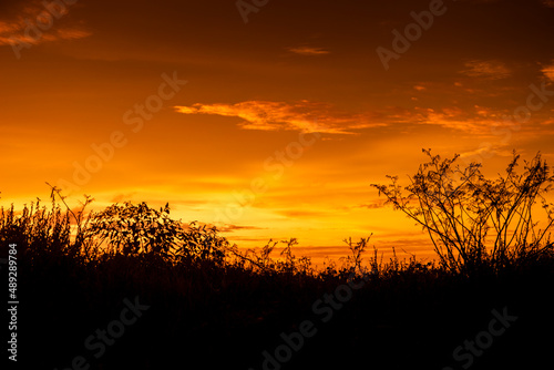 Obraz premium Beautiful sunset silhouette with golden sky