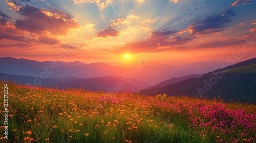 © Turab, Fototapeta premium Beautiful sunset sky in the mountains.