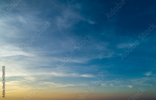 © LALSSTOCK, Obraz premium Beautiful sunset sky with clouds and orange strip along the horizon.