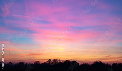 © creativeneko, Obraz premium Beautiful sunset sky with dramatic light and vibrant color.