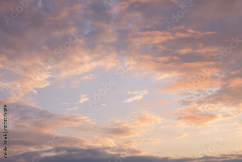 © SKfoto, Naklejka premium Beautiful sunset sky with pink clouds. Background or template.