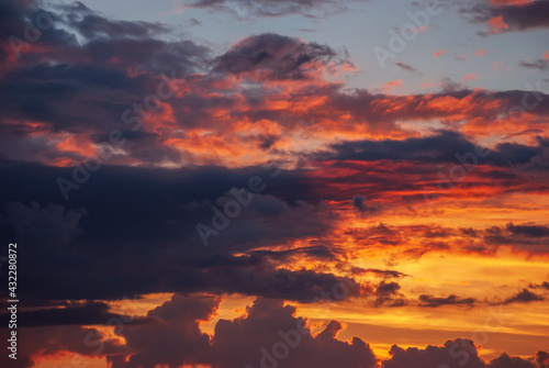 © Андрей Иванов, Obraz premium Beautiful sunset sky with thunderstorm clouds