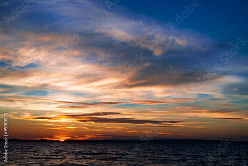 © itlada, Naklejka premium Beautiful sunset under river