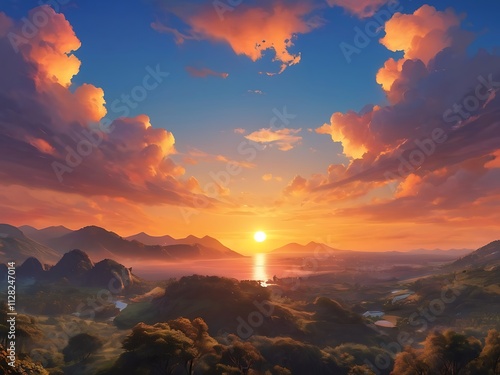 Naklejka premium Beautiful sunset view