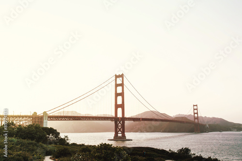 © mysh, Naklejka premium Beautiful sunset view on Golden Gate bridge in San Francisco, California, USA