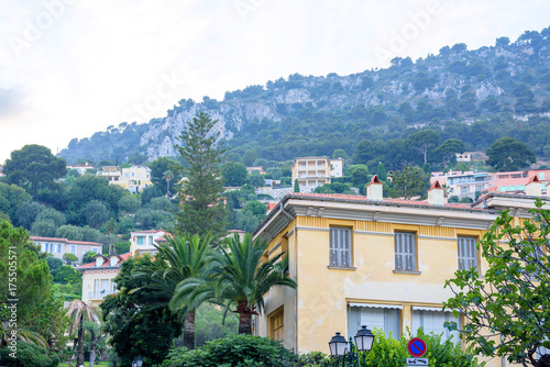 © frimufilms, Obraz premium Beautiful sunset view to Beaulieu sur mer city colorful buidlings in France