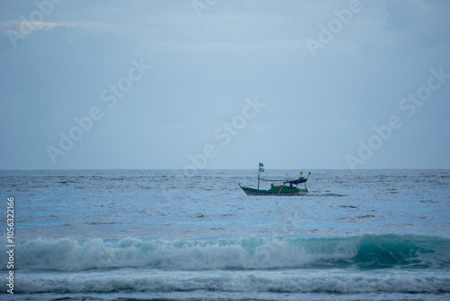 © Mang Kelin, Naklejka premium Beautiful sunset with blue sea in the afternoon. Looks dramatic, calming and peaceful